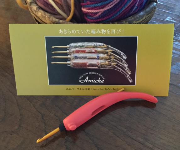 ユニバーサルかぎ針《あみ〜ちぇ》は障害のあるなしにかかわらず使え、手が痛くなりにくいかぎ針補助具(特許取得商品)です。手編みサロンあみ〜ちぇでは、あみ〜ちぇインストラクターの仲間とともに、ユニバーサルかぎ針《あみ〜ちぇ》を伝え、拡げる活動をしています。