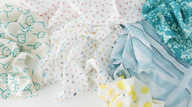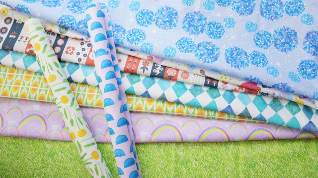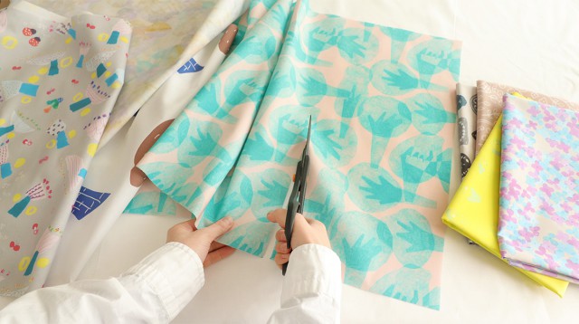・デザイナーズファブリックの展示(布の質感などを実際にふれて確認することができます)