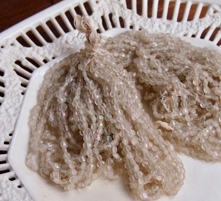 繊細なレースやビーズ、色褪せたリボンや香水のラベルなどの紙もの。