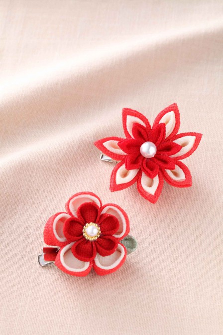 つまみ細工のきほんで作る、お花のブローチの講習も開催します。