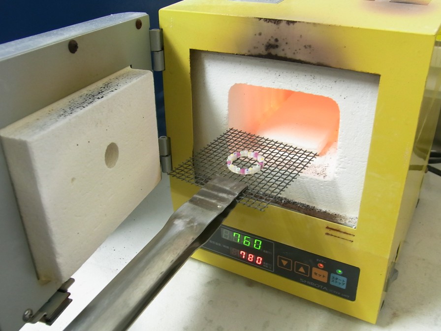 800℃の電気炉を利用し、シルバー枠とガラスが溶け合った美しいアクセサリーを制作して、その体験時間内または当日お持ち帰り頂けます。