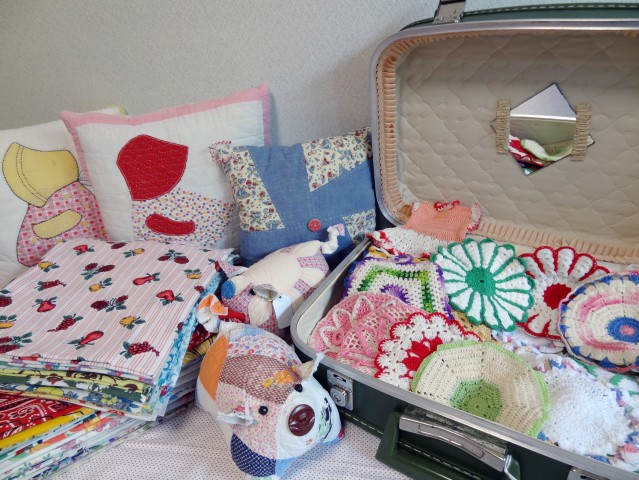 アメリカの小さなアンティークショップやフリーマーケットを回り買い付けたフィードサック、生地、アンティーク手芸材料及び雑貨などをお持ちします。