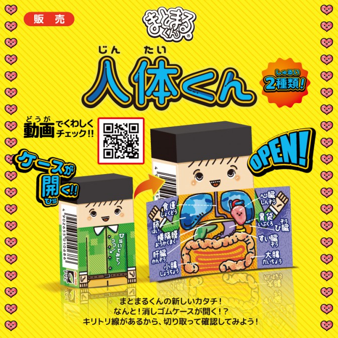 おゆまるについて詳しくは動画をチェック♪ブースで販売する新商品の「人体くん」はなんと!消しゴムケースが開きます!!さらに!ブース内で【第10回けしごむ・はんこ・てん】の受賞作品を展示・発表いたします!