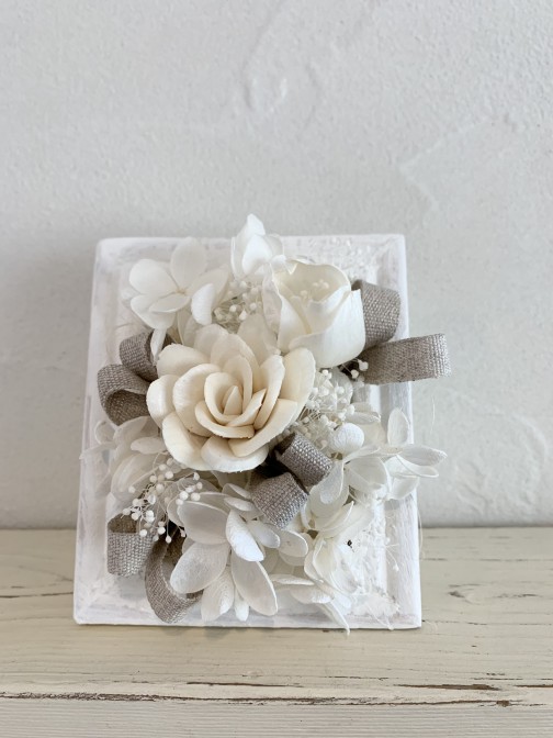 ヒロスタイル 雑貨屋さん風・ナチュラルホワイト額アレンジ
