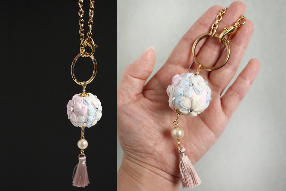 クラフトハートトーカイ 会場参加/つゆつきのつまみ細工教室 小毬のバッグチャーム