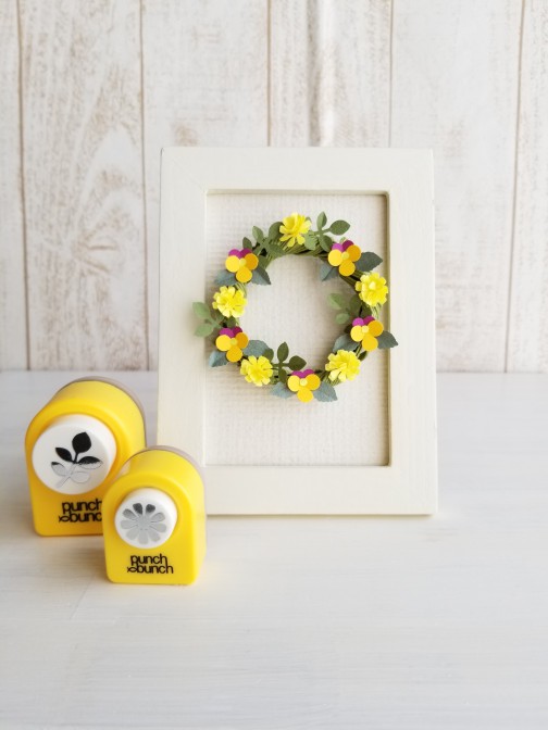 パンチバンチ パンチアートでモッコウバラとビオラのフレームアレンジメント