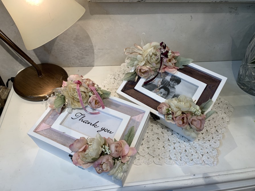 どちらも母の日の贈り物に最適な美しいアーティフィシャルフラワーを使ったおしゃれな雑貨です。
