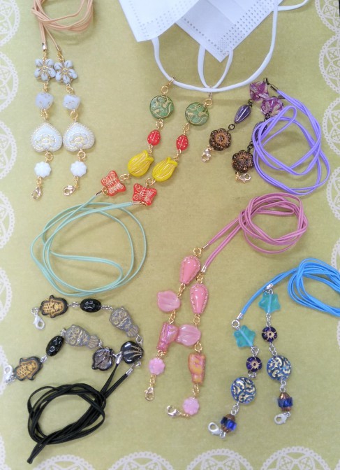 お好きなチェコビーズを選んで、可愛いマスクコードを作ります。