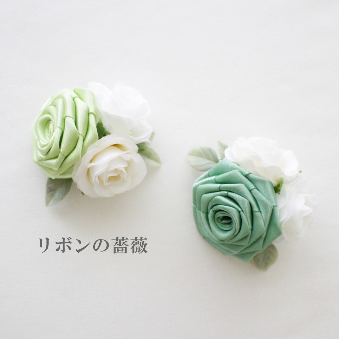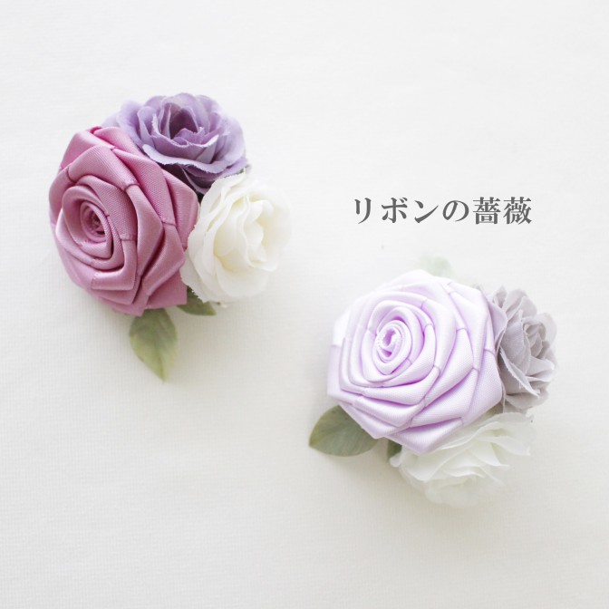 アーティフィシャルフラワーのミニ薔薇と合わせて、リボンローズを1輪作製いただきます。