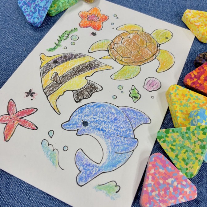 誰でも描ける簡単なイラストの描き方や、ぬりえを使って、クレヨンの不思議な色合いを体験できます!
