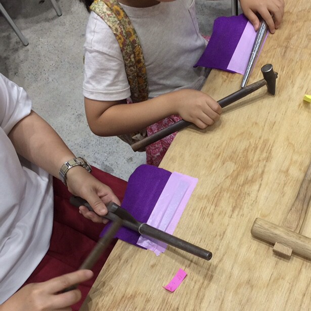 カナヅチの跡を模様にしていく簡単な伝統技法で、お子様から大人までご参加頂けます。