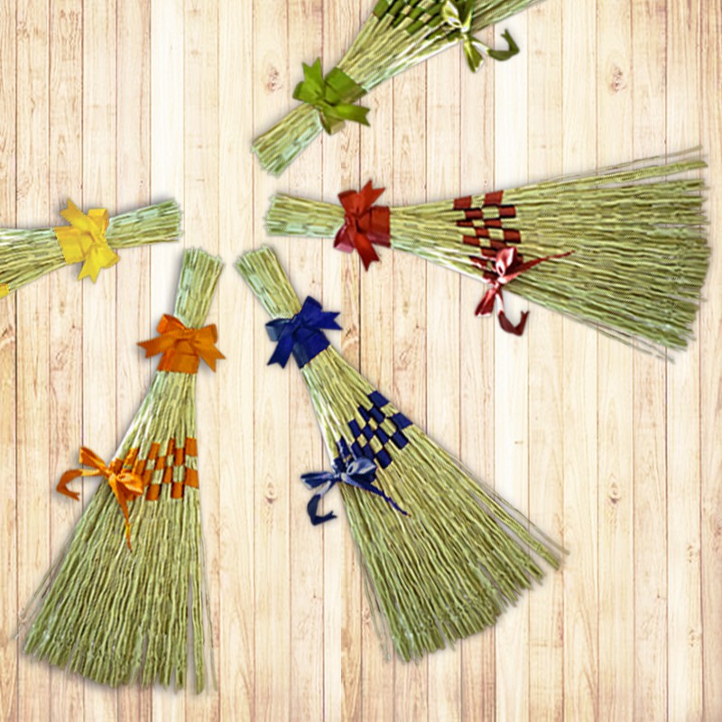『たたあみ(紙畳クラフトシート)』を解いて、束ねて、リボンで結んで可愛いホウキを製作します。