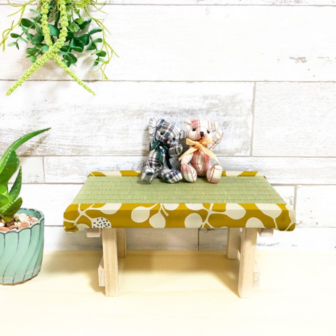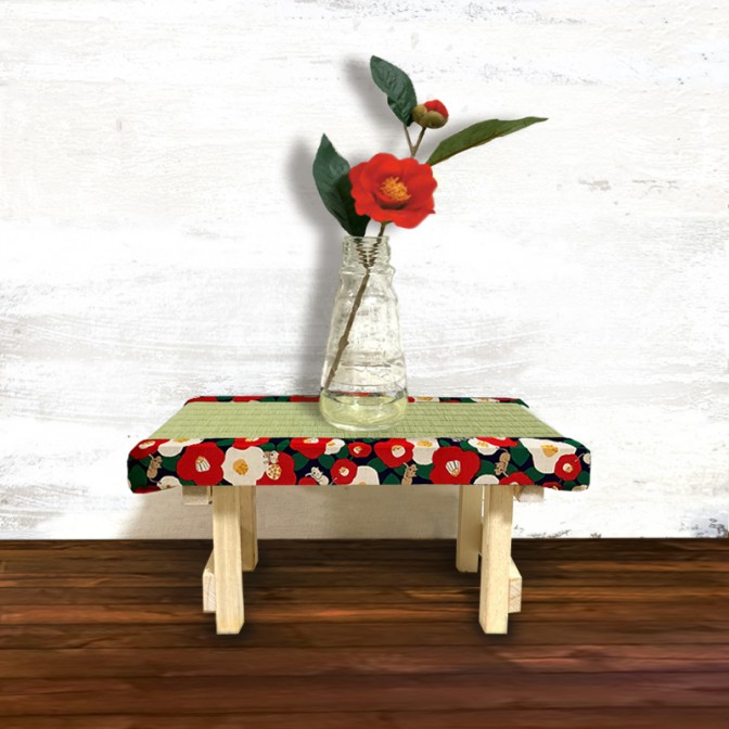 『たたあみ(紙畳クラフトシート)』を切って、包んで、貼り付けてミニベンチを作成します。