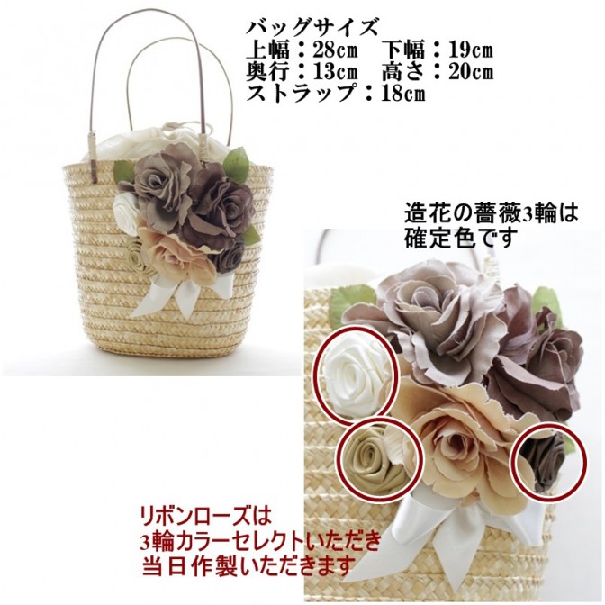 カゴバッグのアーティフィシャルフラワーは画像のカラーが確定となります。