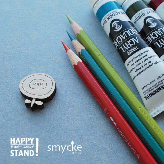 木製のオリジナルパーツを好きな色の絵の具や色鉛筆、ネイル等で彩色し、レジンを盛って固めます。