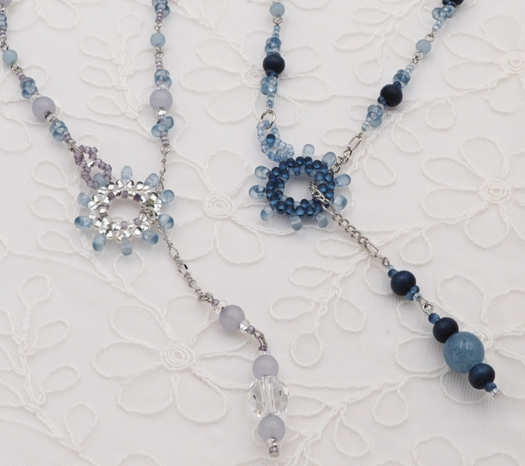 平安二藍とすくも藍でつないで、リングのパーツがアクセントのロングネックレスです。