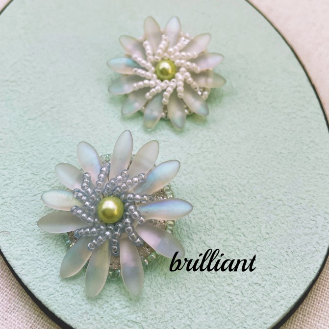 丸小ビーズを数色の中から選んでいただき、糸と針を使ってビーズ刺繍で可愛い『マーガレットのブローチ』をお作りして頂きます。