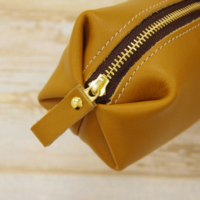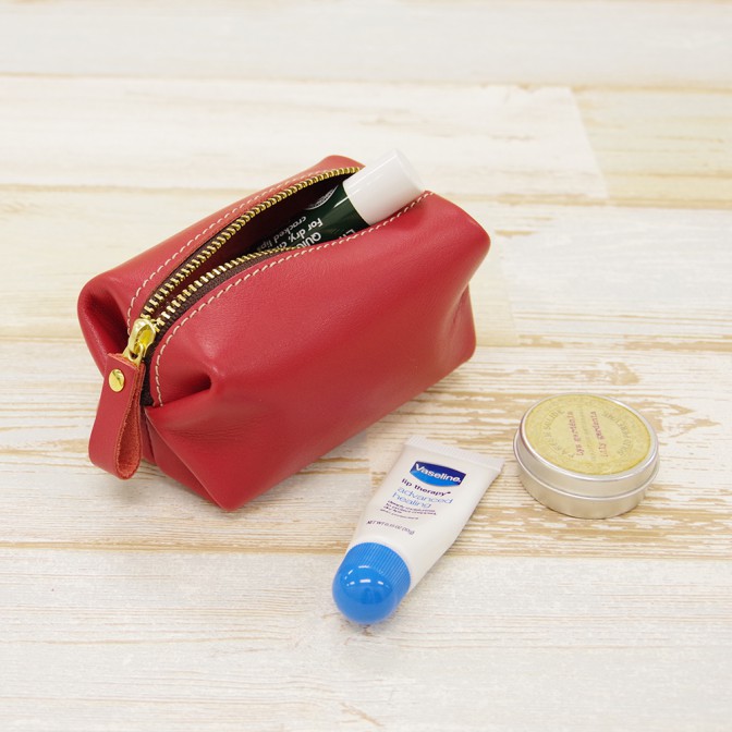 紙風船のような形をしたポーチを、本革を使って作ります。